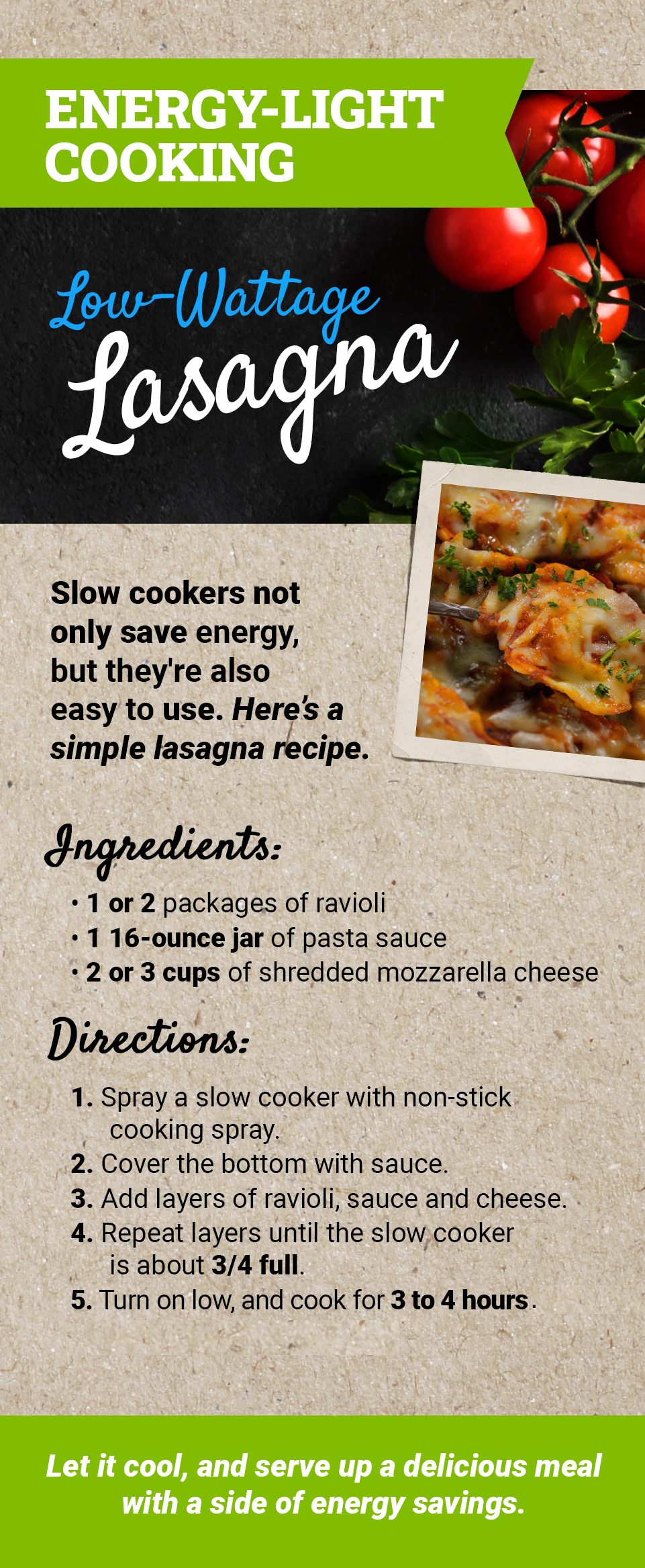 Energy-Light Cooking: Low-Wattage Lasagna
